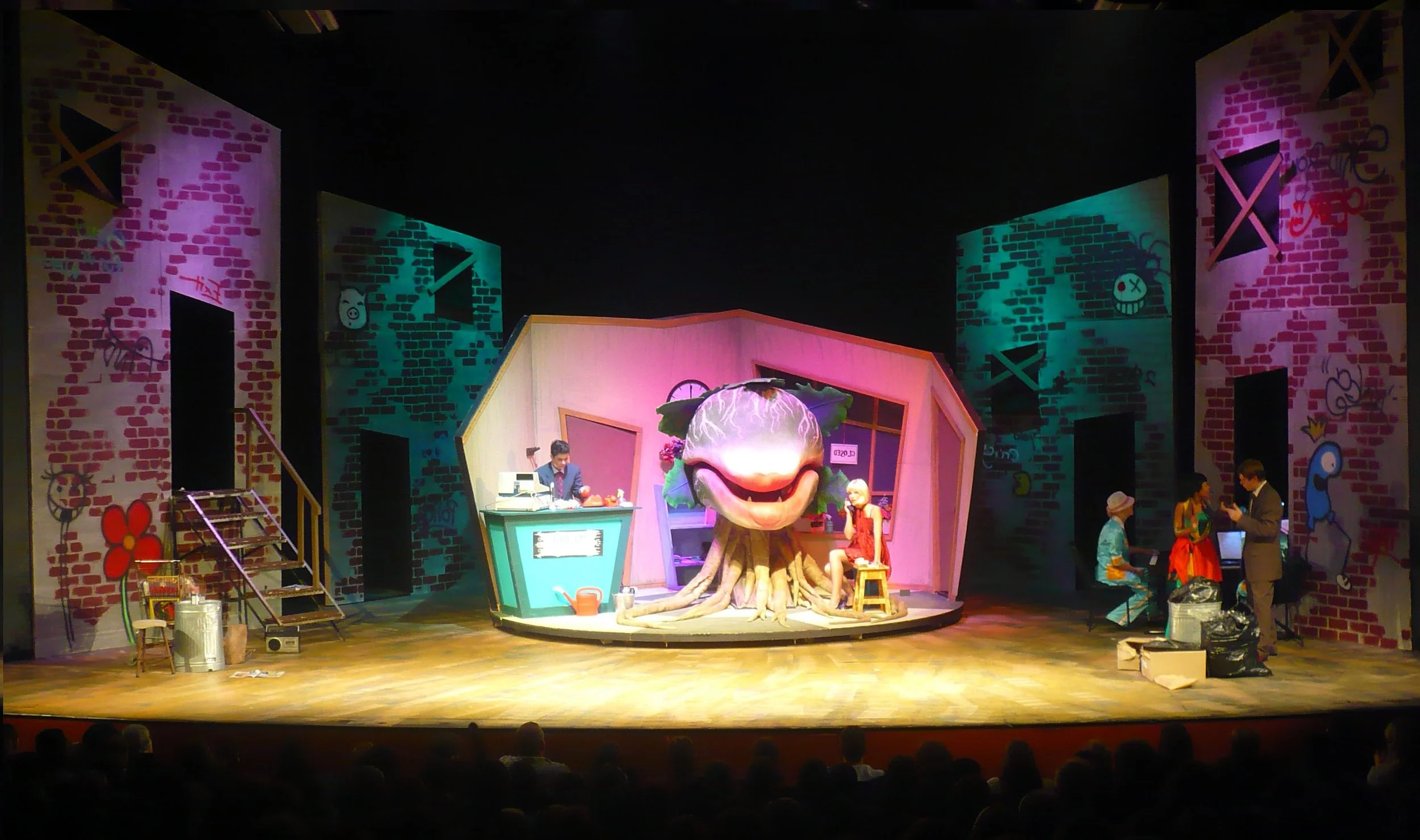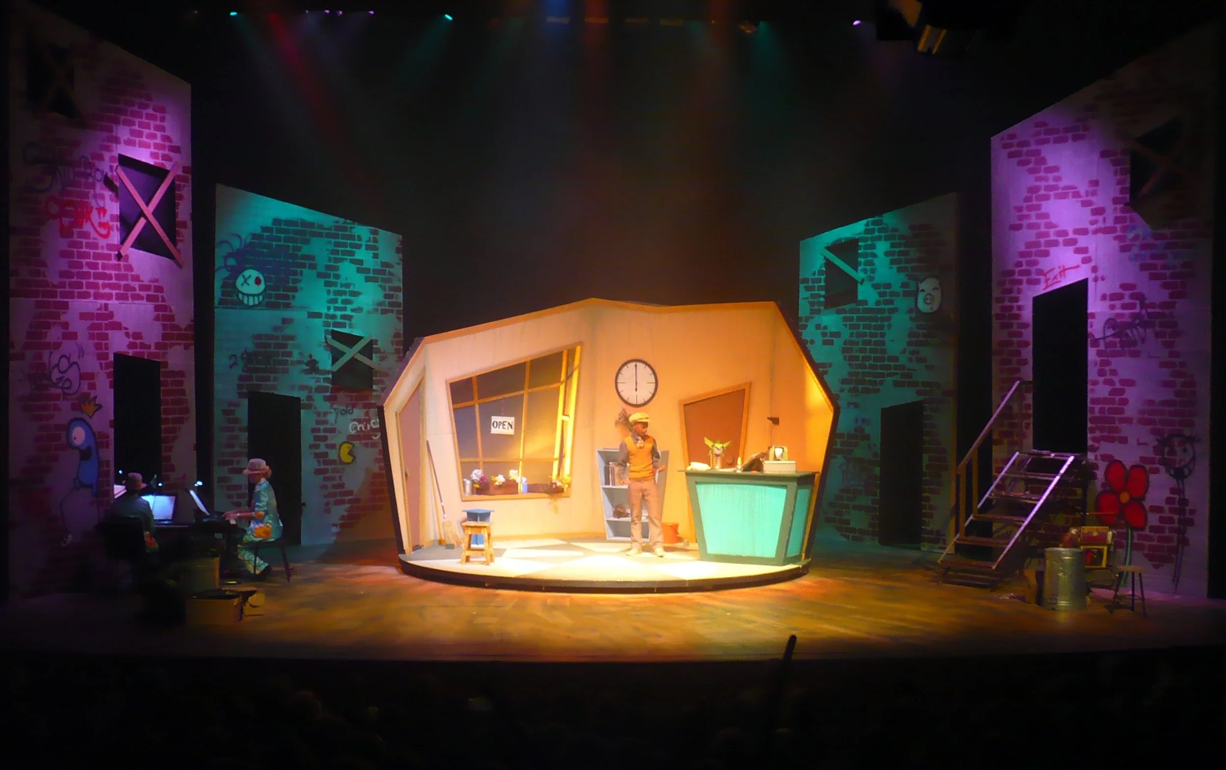 Collaborative art direction and stage design project with students. Through the process of imagining and constructing an entire world from scratch, from distorted architecture to prop fabrication. Together, we explored how light, color, and space shape emotion and story. IICS 2016